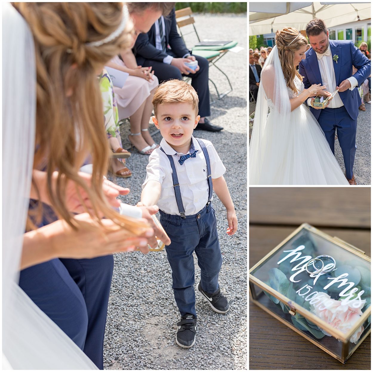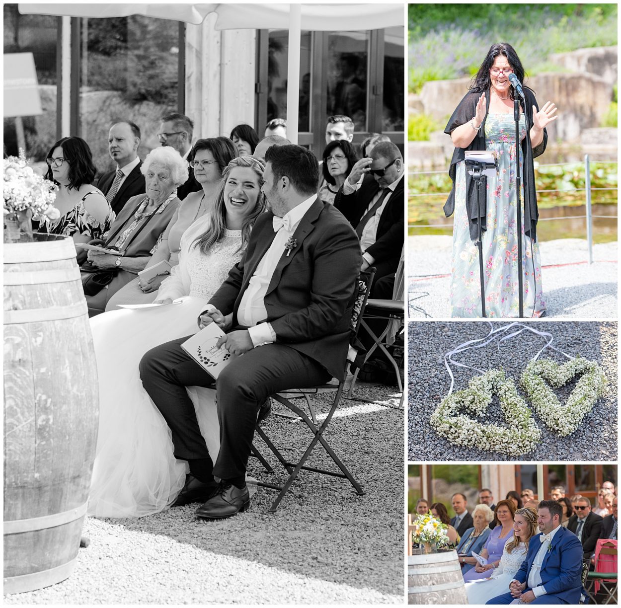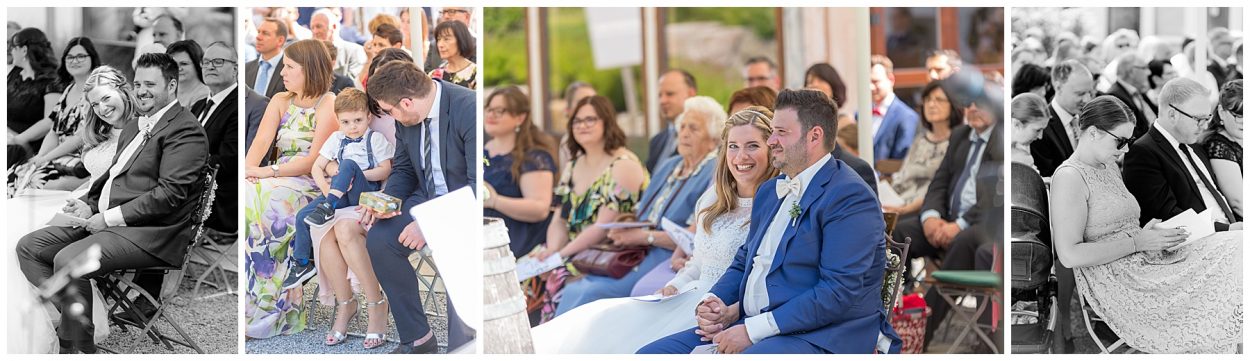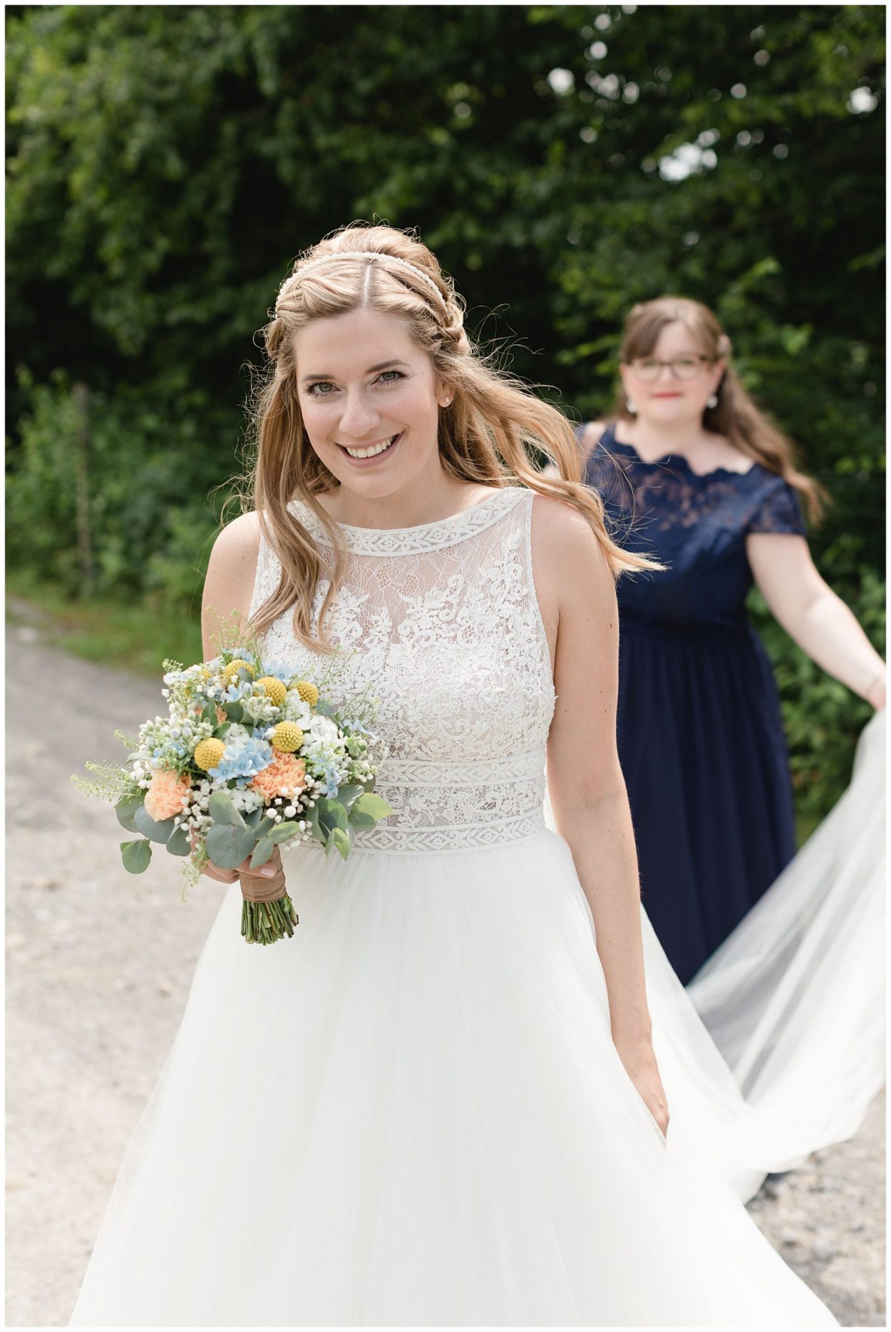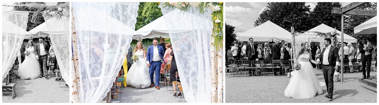 Nach dem Paarshooting hat sich die Braut noch ein bisschen zurück gezogen, um dann gemeinsam mit Ihrem Bräutigam den Weg zwischen den Gästen zum „Altar“ entlang zu gehen. Eine kirchliche Trauung im Freien ist besonders für mich, es ist schade, dass es das nicht viel häufiger gibt – es hat so viel mehr Leichtigkeit. Die Pfarrerin hat eine sehr schöne, individuelle und wunderschöne Trauung gehalten, sie war emotional, modern und einfach stimmig für das Brautpaar.