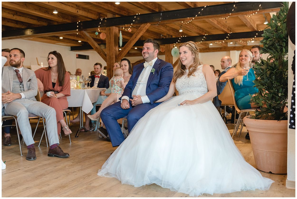 Danach gab es eine Überraschung für das Brautpaar und es hieß „Film ab“ – viele Freunde haben mitgewirkt und es war so unglaublich lustig und fröhlich mit einigen sehr emotionalen Momenten – kurzum: Ganz großes Kino und so eine riesige Freude für das Brautpaar! Nach dem Essen, ebenfalls so locker und unkompliziert wie das Braupaar ausgerichtet und als Grill-Buffet angeboten (und wahnsinnig lecker, vielen Dank noch mal für die Einladung dazu!) war mein Auftrag zu Ende und ich habe mich verabschiedet. Es fiel mir richtig schwer, denn die beiden sind mir sehr ans Herz gewachsen und ich fand es so schade, dass unsere gemeinsame „Reise zur Hochzeit“ nun zu Ende ging.