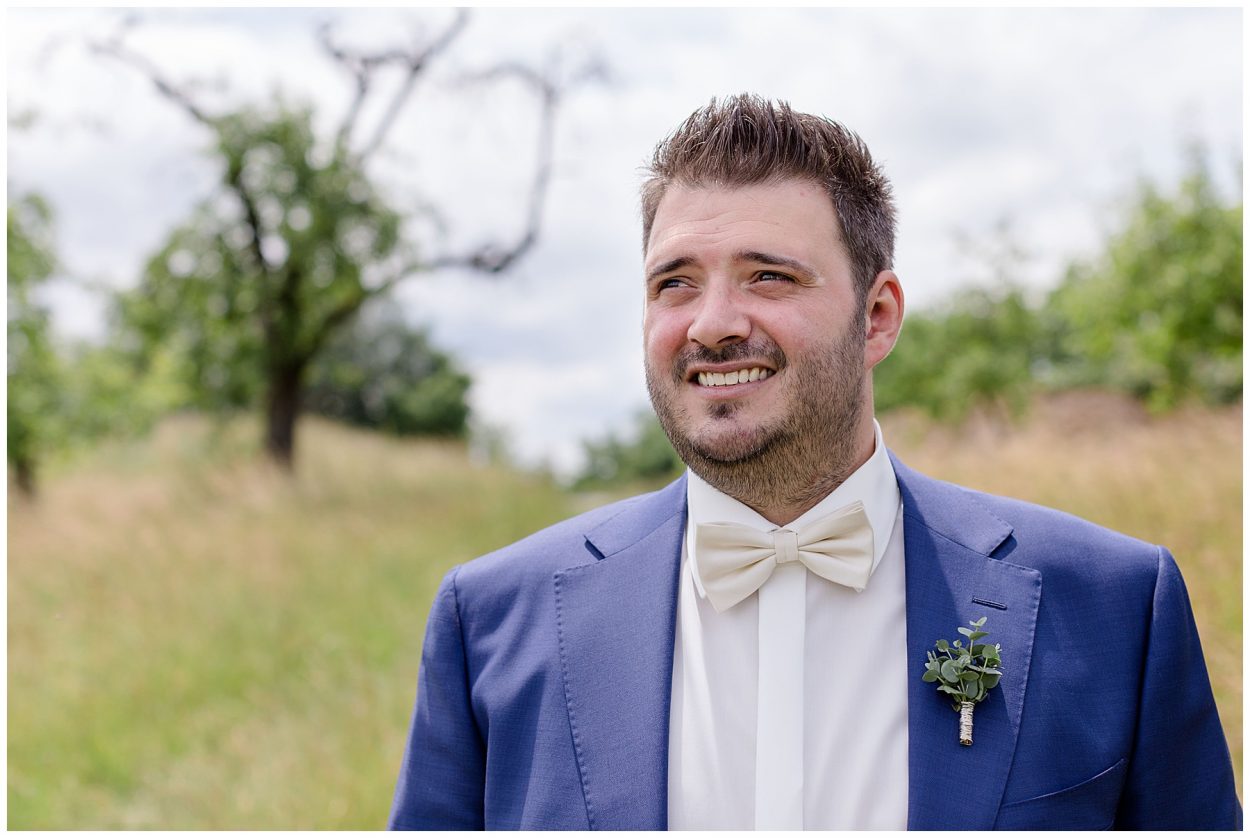 Dann war er da – der große Moment des First Looks. Benny, der Bräutigam war schon am Hofgut Hagenbach angekommen und hatte sich noch um die letzten Details gekümmert. Wir haben uns ein ruhiges Plätzchen gesucht und dann kam seine Braut und WOW – das ist schon ein besonderer Moment, seine Frau zum ersten Mal als Braut zu sehen.