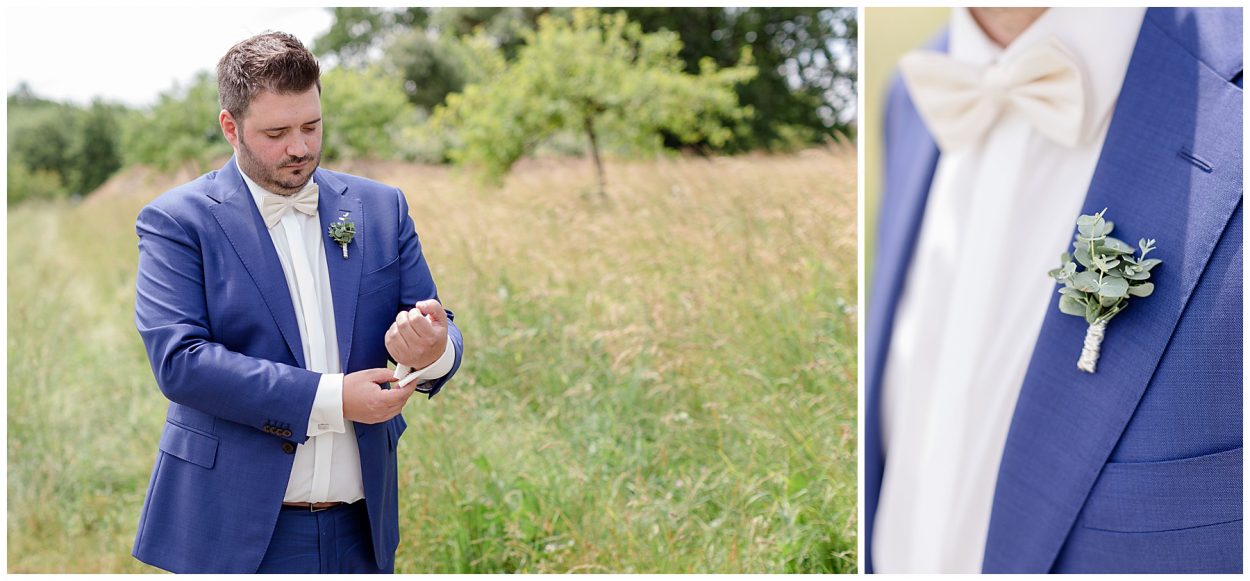 An einem wunderschönen Sommertag im Juni 2019 war es soweit: Die kirchliche Trauung im Freien auf dem Hofgut Hagenbach in Backnang von Vanessa und Benny wurde gefeiert. Selbstverständlich habe ich, wie eigentlich vor jeder Hochzeit ehrlich gesagt, eifrig die Wettervorhersage gecheckt, gehofft und ein wenig mitgebangt – denn die evangelische Trauung sollte unter freiem Himmel im Hof des Guts stattfinden. Die Wetterlage war, wie eigentlich üblich Mitte Juni, unbeständig, gewittrig und quasi eine Wundertüte. Petrus hat es aber sehr gut mit meinem Brautpaar und seinen Gästen gemeint – es war ein herrlicher Tag mit einem Mix aus Sonne und weißen, bauschigen Wolken bei sommerlichen Temperaturen.